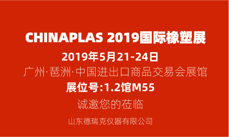 2019年CHINAPLAS國際橡塑展將于2019年5月21-24日在中國廣州.琶洲.中國進(jìn)出口商品交易會展館舉辦。該展會涉及的行業(yè)有化學(xué)、橡膠、塑料、原料等;涉及的主要產(chǎn)品有塑料機(jī)械及產(chǎn)品、塑膠加工機(jī)械等。山東德瑞克應(yīng)邀參加,屆時(shí)我們將攜2019新款橡膠塑料檢測儀器在1.2館M55展位恭候新老客戶的參觀指導(dǎo)!