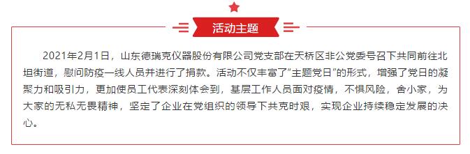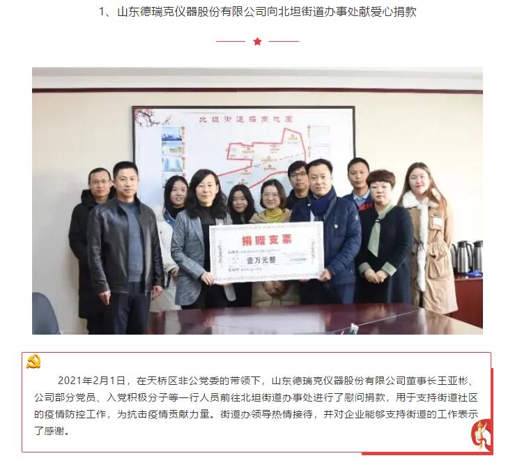 凝聚黨心 共同抗疫:山東德瑞克儀器股份有限公司黨支部響應(yīng)天橋區(qū)非公黨委號(hào)召向街道奉獻(xiàn)愛心